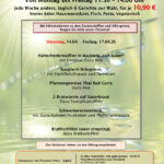 Freitag, 15.05. – Sonntag, 17.05.26 Garnelen – Tage Garnelen in Oliven-Knobi-Öl, mit Zwiebeln, Tomaten, Oliven, Lauch, dazu Baguette Garnelen in Tomaten – Knobisauce, dazu Bandnudeln Garnelen Thai – Red – Curry, mit Gemüsen, dazu Duftreis Garnelen in Weißwein – Dillsahne Sauce, dazu Reis je 23,90 €...