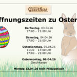 Mittags-Wochenkarte vom 07.04. – 10.04.26 Mittagstisch im Gasthaus Geesthus Von Montag bis Freitag 11:30 – 14:00 Uhr Jede Woche anders, täglich 6 Gerichte zur Wahl, für je  10,90 € Immer dabei Hausmannskost, Fisch, Pasta, Vegetarisch              ...