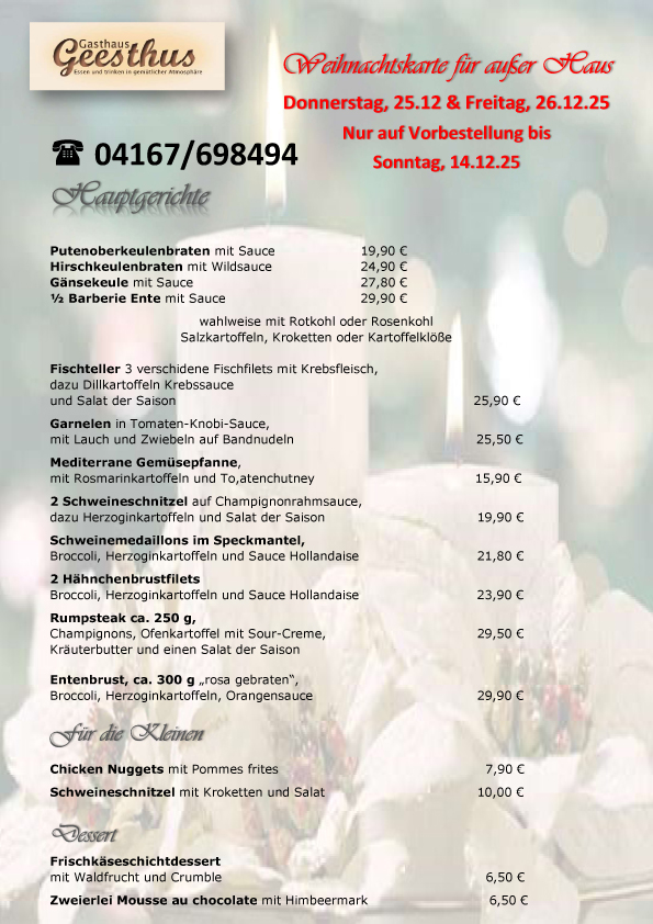 - und 2. Weihnachtstag 11:30 – 14:00 und 17:00 -20:00