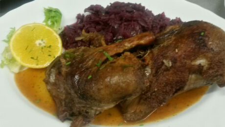 Halbe Barbarie Ente mit Rotkohl oder Rosenkohl,