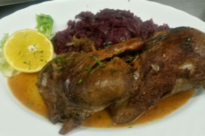 Halbe Barbarie Ente mit Rotkohl oder Rosenkohl,